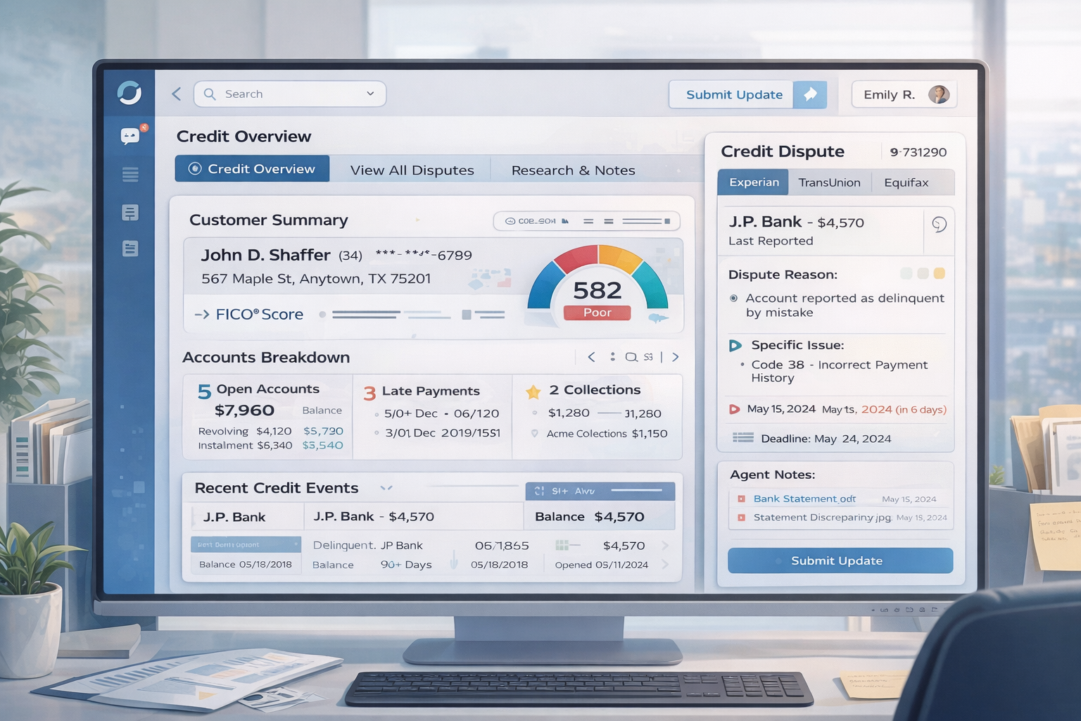 This system transformed complex bureau data into agent-readable dispute reports.