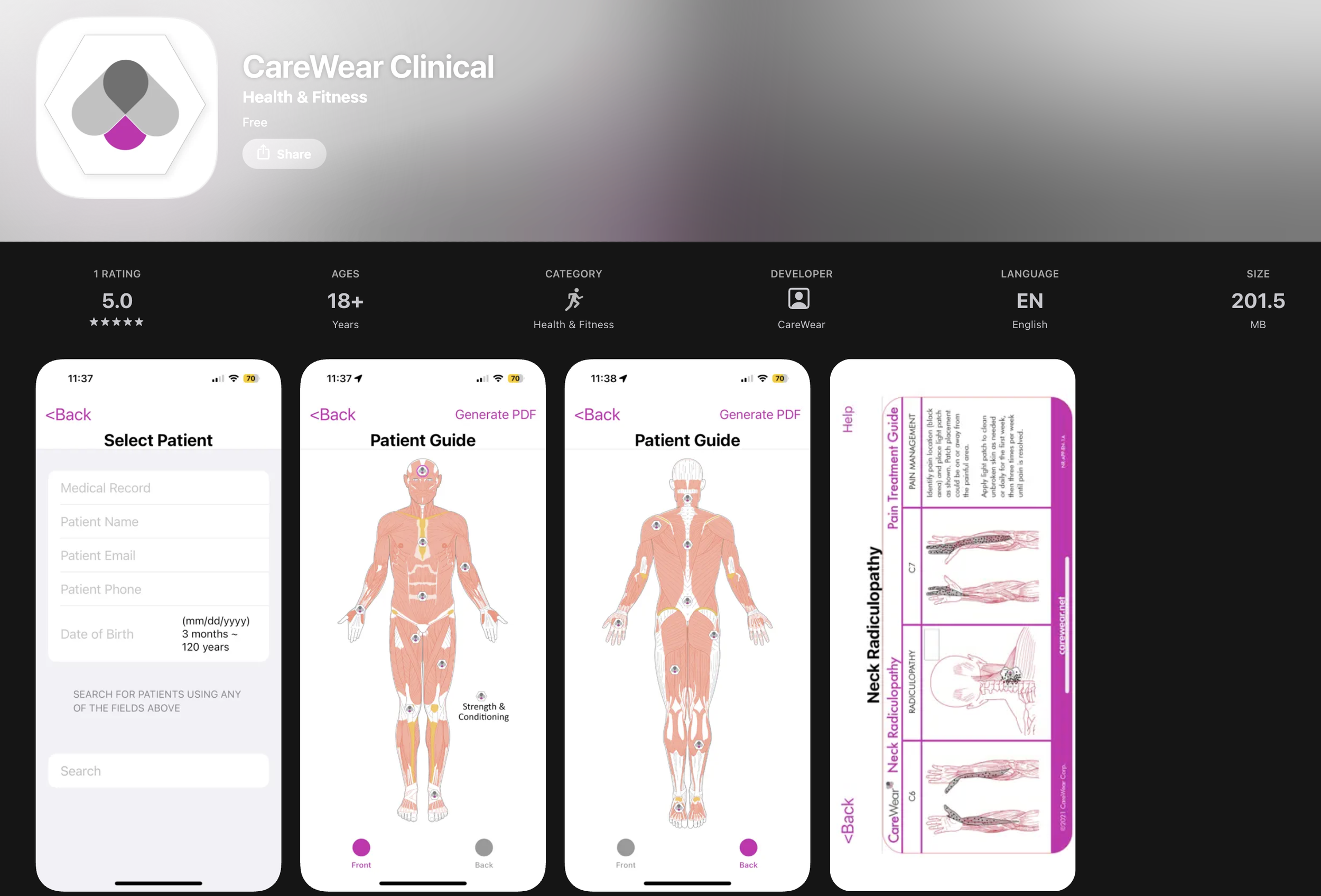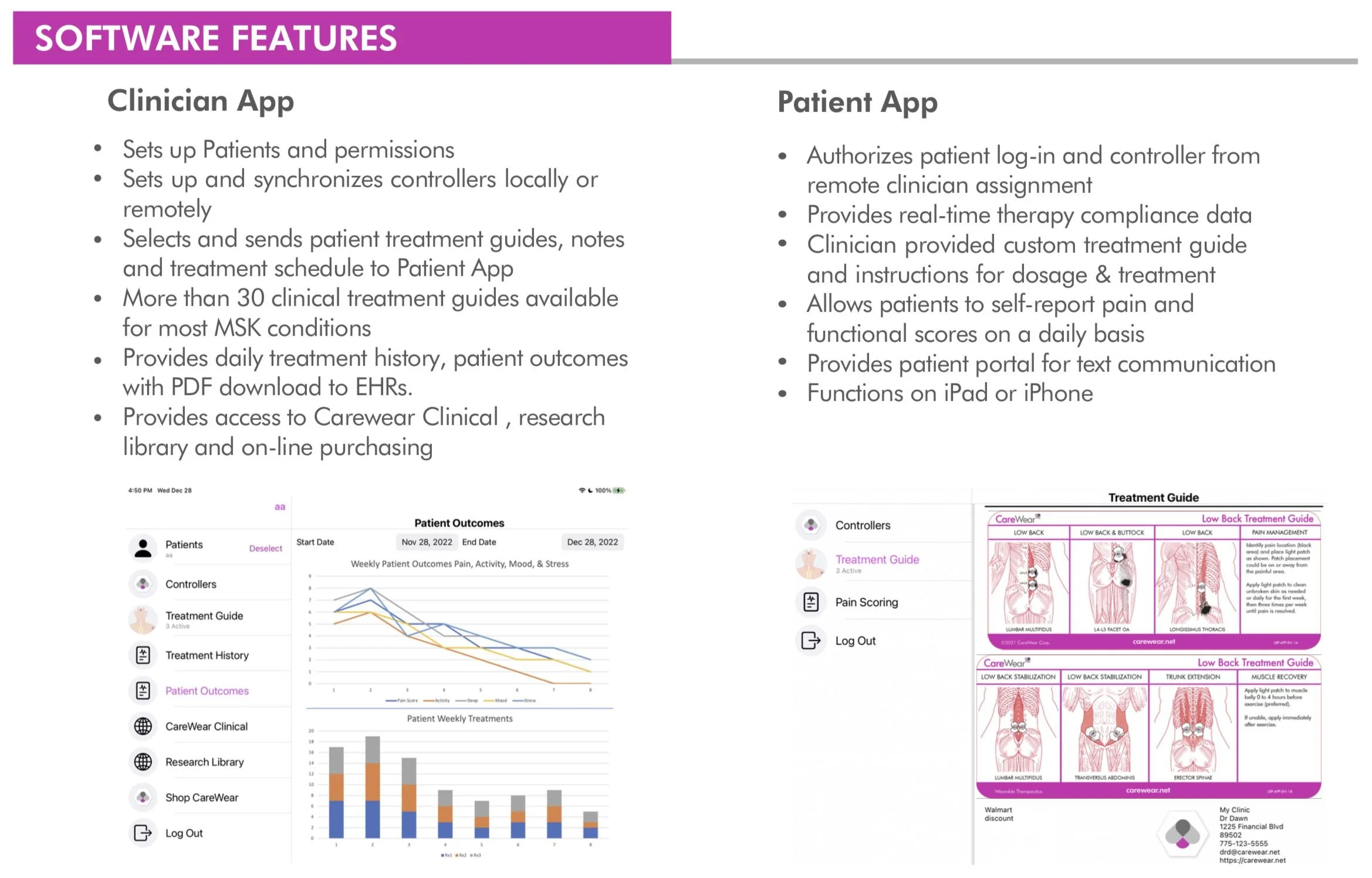 The app synchronized real-time treatment data from wearable devices to both patients and physicians, improving adherence tracking and clinical transparency.